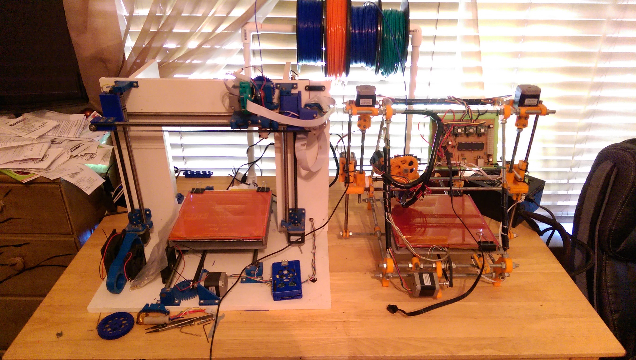 This is a small gallery of the 3d printers I built 2012-2013 or so. The first was a Prusa i2 and the second was a mendel90 (sturdy). In true reprap fashion, the i2 was used to print the parts for the mendel90. Overall these printers ran about $600-700 each in parts. That’s an amazing contrast to the $200 printers that are available nowadays that basically work straight out of the box.